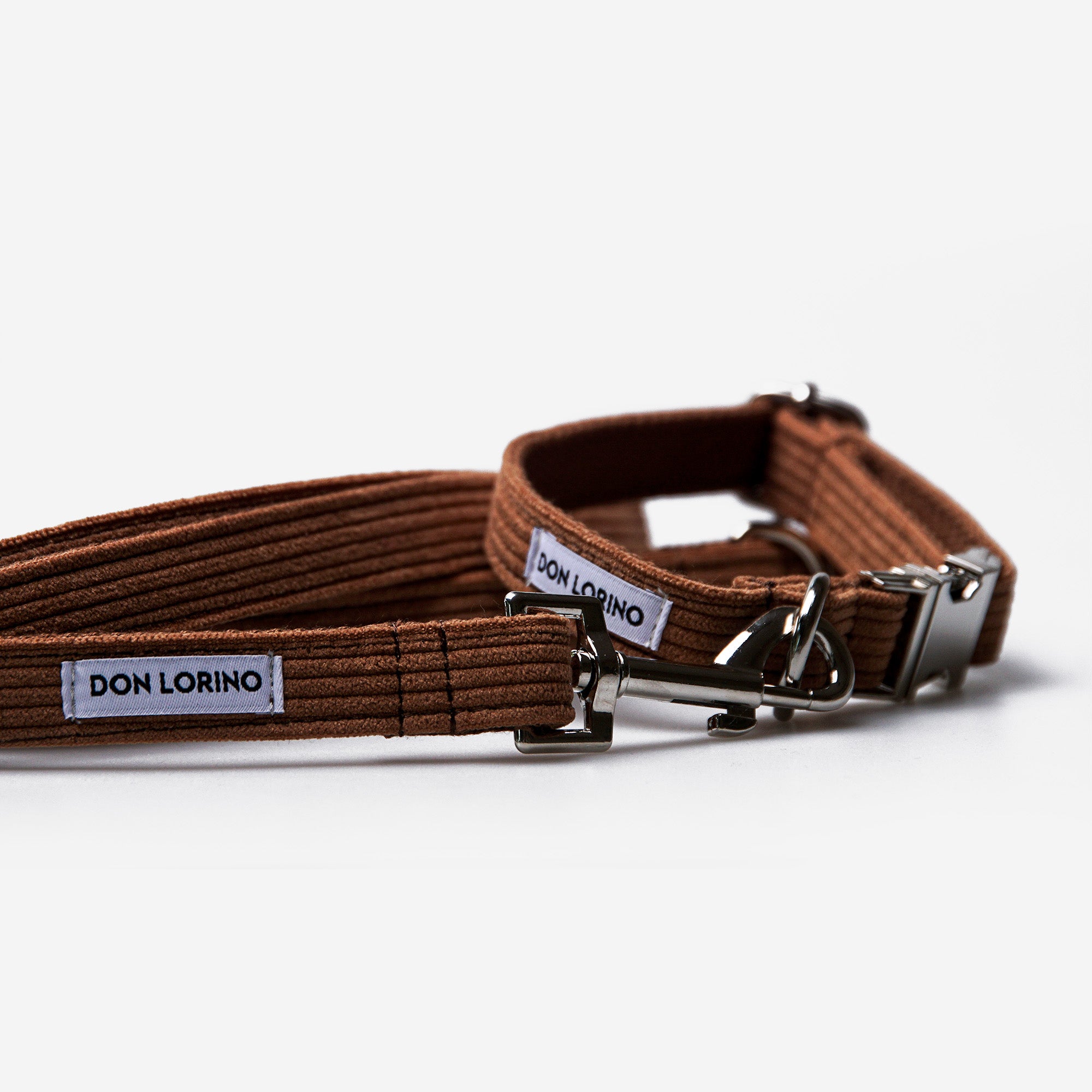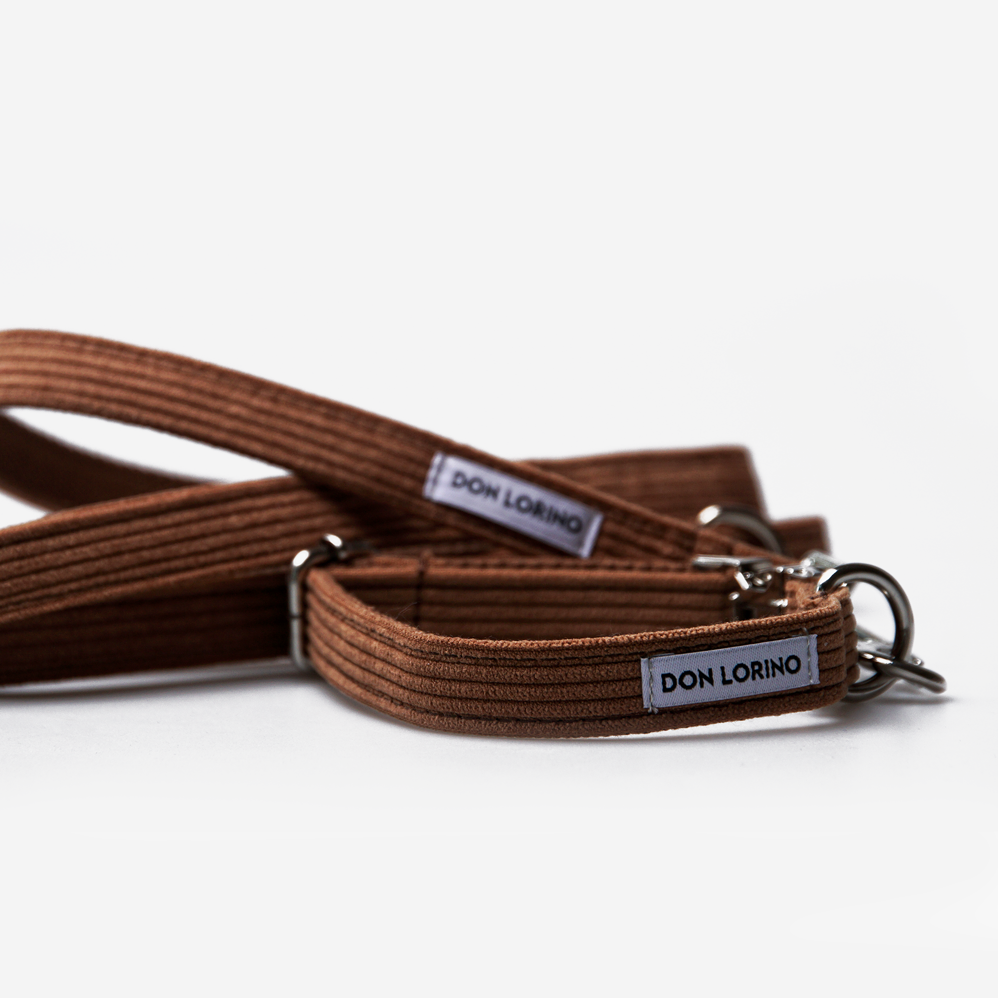 Hundkoppel Click Pop Mocha är ett handgjort hundkoppel i en serie matchande halsband, selar och flugor. Tillverkat i ett unikt lättviktsmaterial med utsida av mjuk manchester och insida av vaxad bomull, kombinerar det både stil och praktiska egenskaper. Det vaxade bomullsmaterialet är slitstarkt, allergivänligt, lätt och antibakteriellt – perfekt för dagliga promenader.