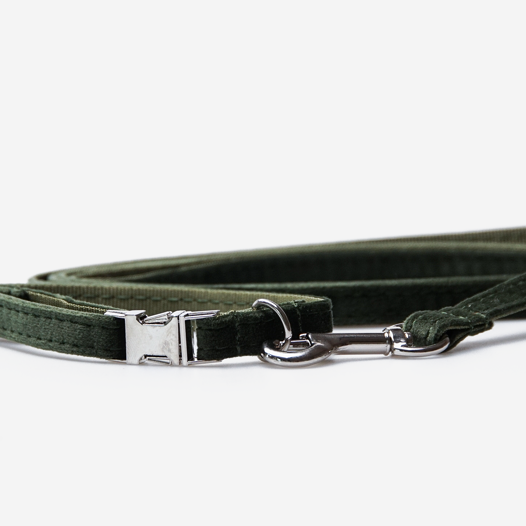 Soft Olive matchas enkelt med halsband, sele och fluga i samma kollektion.