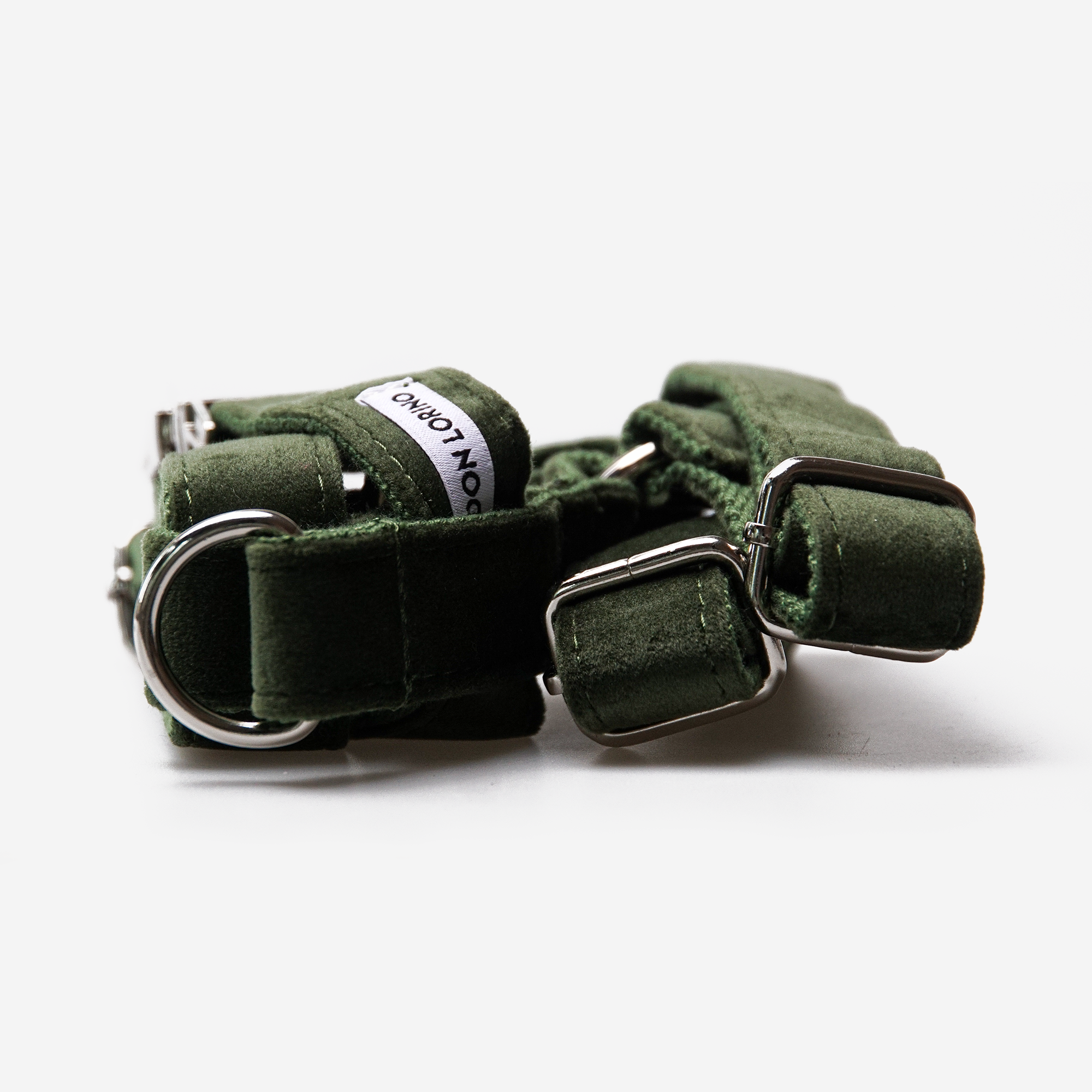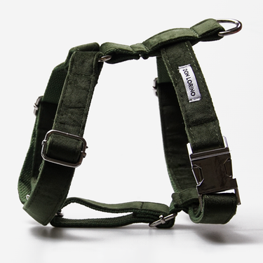 Hundsele Click Soft Olive är en del av vår kollektion av handgjorda halsband, koppel, selar och flugor. Den är tillverkad i ett härligt lättviktsmaterial med utsida av mjuk sammet och insida av vaxad bomull. Kombinationen gör selen slitstark, allergivänlig och antibakteriell, samtidigt som den är skonsam och bekväm för din hund att bära.