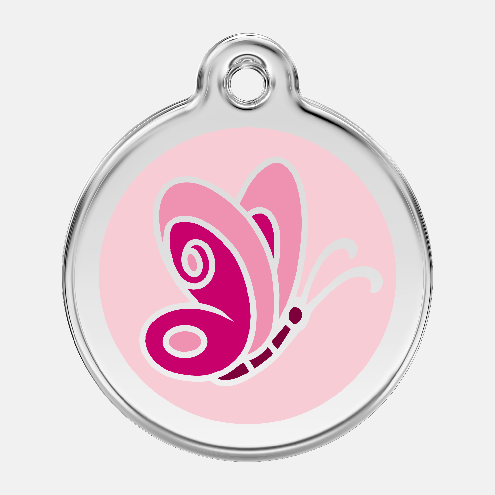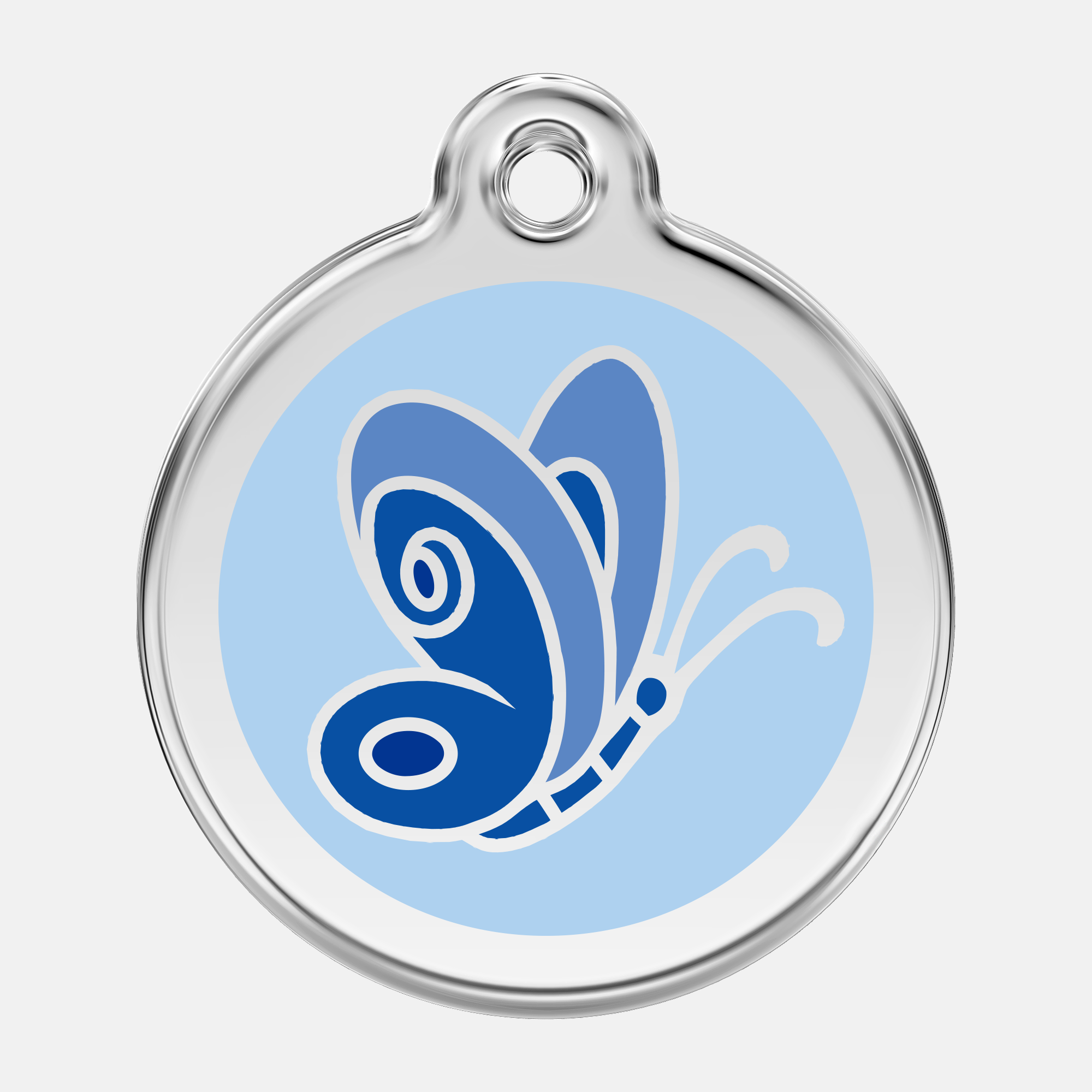 Namnbricka Gravyr Butterfly är eleganta namnbrickor med gravyr, anpassade för hundhalsband och selar. Namnbrickan är tillverkad i slitstarkt rostfritt stål och erbjuder en hållbar och högkvalitativ lösning med personlig gravyr. Genom att gravera hundens namn och kontaktuppgifter bidrar namnbrickan till ökad säkerhet i vardagen.