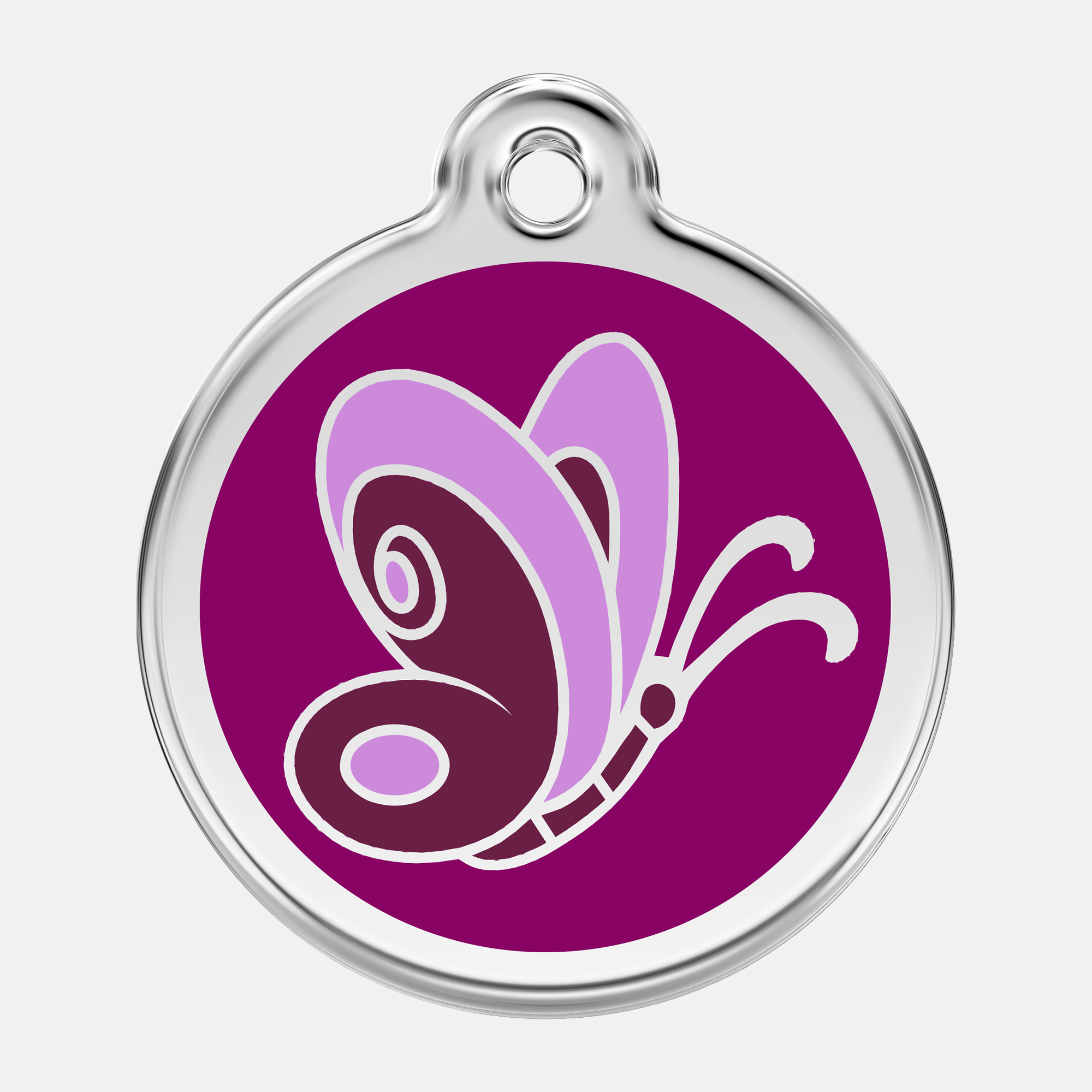 Butterfly-motivet ger Namnbricka Gravyr Butterfly ett tydligt visuellt uttryck, samtidigt som brickan fyller en viktig säkerhetsfunktion på hundhalsbandet. samtidigt som brickan fyller en viktig säkerhetsfunktion på hundhalsbandet. Vi samarbetar med en av Schweiz ledande gravyrfabriker för att säkerställa att både namnbricka och gravyr håller högsta kvalitet. Detta samarbete möjliggör även snabba leveranser av personligt graverade namnbrickor.